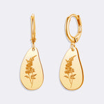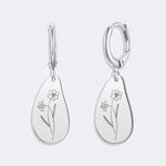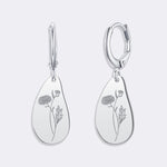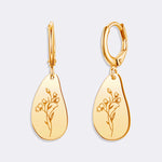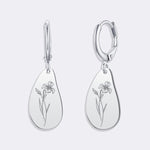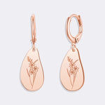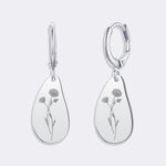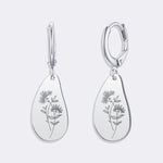Adorn your ears with our Custom Name Birthflower Hoop Dangle Earrings. These personalized earrings feature your unique birth flower, adding a touch of elegance and meaning to your outfit. With a minimalist yet exaggerated design, these earrings are the perfect addition to any jewelry collection. Express yourself with our customizable earrings.