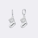Add a unique touch to your holiday look with our Custom Name Christmas Stocking Gift Hoop Dangle Earrings. These personalized earrings are the perfect Christmas gift, featuring a minimalist design with an exaggerated stocking shape. Spread the festive cheer with these unique and stylish earrings.