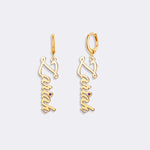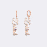 Indulge in personalized elegance with our Custom Name with Birthstone Earrings. These stunning hoop dangle earrings feature your chosen name and birthstone, making them a truly unique and special piece of custom jewelry. The perfect gift for any occasion, these earrings are sure to impress with their customized touch.