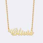 Crafted with care, this necklace features your customized name pendant in a beautifully polished script, suspended from a sleek and durable gold link chain. The timeless design makes it a perfect accessory for both casual and formal wear, whether worn alone or layered with other pieces.