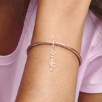 Add a special touch to your bracelet with a customized charm featuring your name and a heart. Express your unique style and make a statement with this charming addition to your jewelry collection.Personalize your jewelry with our Custom Name Charm with Heart.
