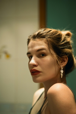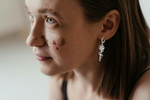 Each earring features a gracefully sculpted rose flower, meticulously detailed to capture the natural beauty of its petals. Nestled within the heart of the rose is a carefully selected, genuine birthstone, adding a subtle sparkle and a meaningful representation of a special month or loved one.
