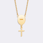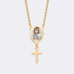 Custom Oval Pendant Photo Memorial Necklace with Cross Charm– Personalized Gift for Love