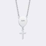 This Custom Oval Pendant Photo Memorial Necklace with Cross Charm is a personalized keepsake jewelry piece, meticulously designed to commemorate a loved one. The necklace features an elegantly contoured oval pendant that can be customized with a high-resolution photo engraving, ensuring a lasting tribute captured in fine detail. Adjacent to the photo pendant, a polished cross charm is suspended, symbolizing faith, remembrance, and enduring connection.